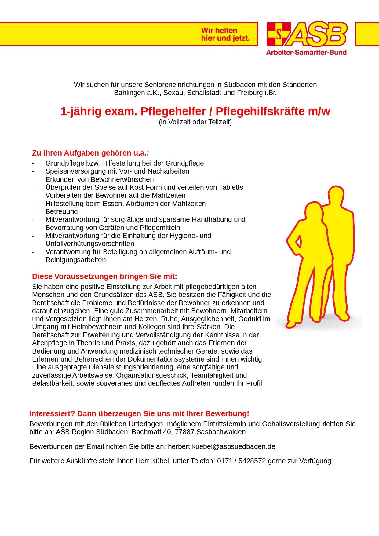 weiterführende Infos zum Jobangebot: 1-jährig exam. Pflegehelfer in Bahlingen: