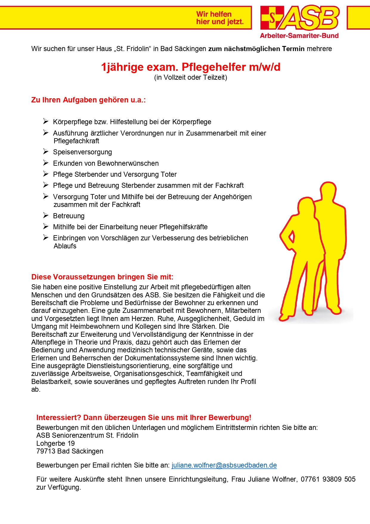 weiterführende Infos zum Jobangebot: 1-jährig exam. Pflegehelfer in Bad Säckingen: