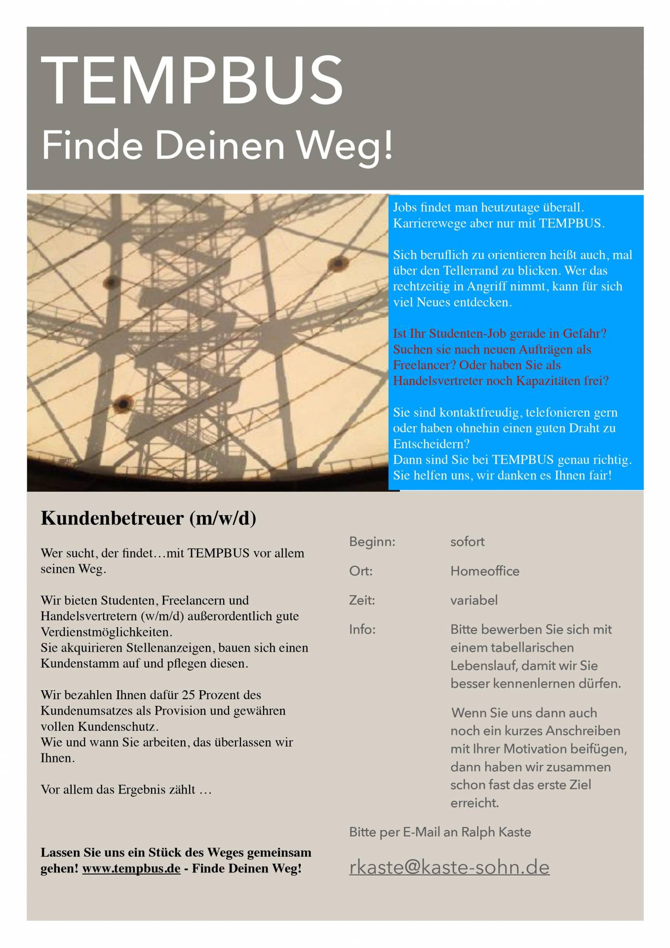Bitte beziehen Sie sich bei Ihrer Bewerbung auf TEMPBUS.